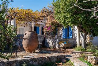 Set in a peaceful location within Saktouria village, this beautifully designed U-shaped home combines traditional Cretan-Cycladic architecture with modern comfort and sustainability. Built from stone and concrete and arranged around a sunny, wind-sheltered terrace, the property offers an inviting outdoor living space surrounded by greenery.INTERIORThe house is fully insulated (walls and roof) and equipped with air-conditioning units for heating and cooling in every room, along with electric panels in some areas. A wood burner creates a warm, cozy atmosphere in the living space. The property operates sustainably with 12 solar panels installed in 2023 with batteries and connected to the grid.The lower level, part of the original stone house, has been beautifully restored i ...