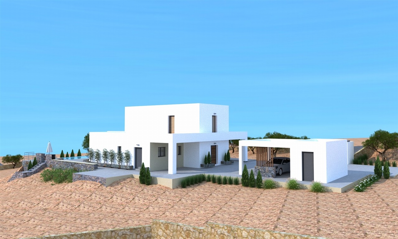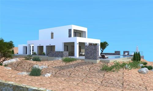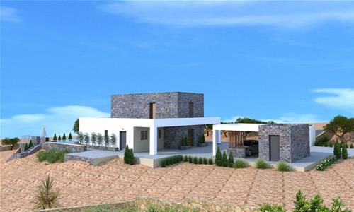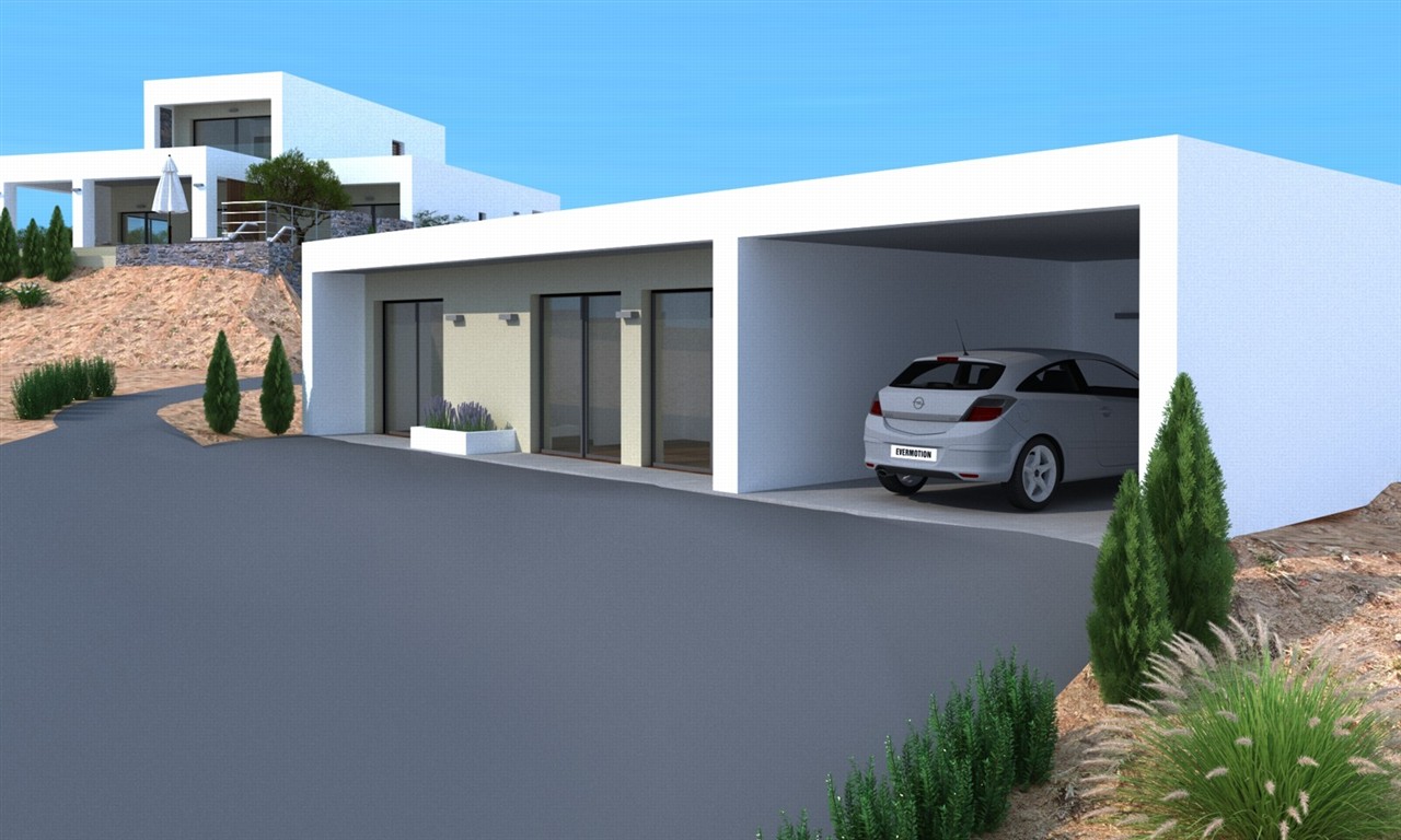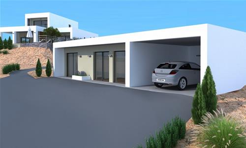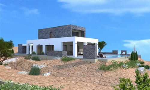 The plot carries a building permit for a modern villa of 178m² living space and a 30m² infinity pool.