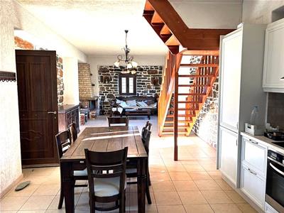 The closest sandy beach is just a 5 minute drive. The property has exposed stonework with double glazed windows and doors, solar water heating, a fireplace and separate wood burner on the ground floor and AC/warm air units to both bedrooms.