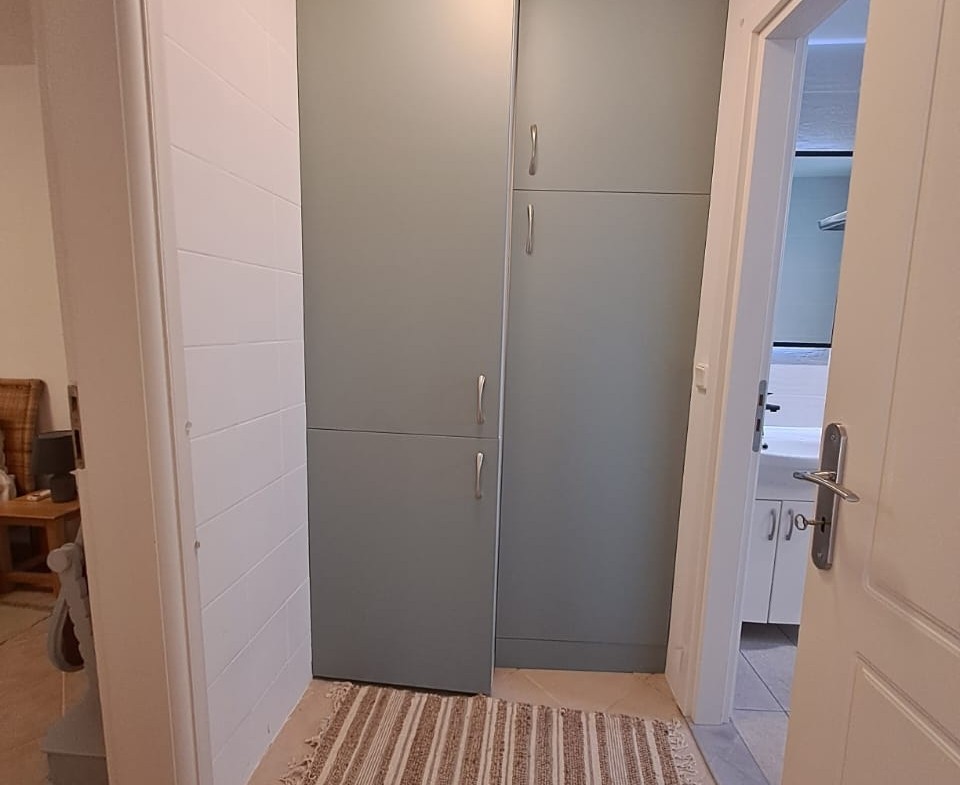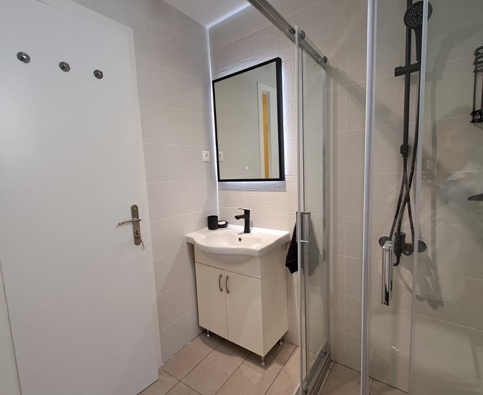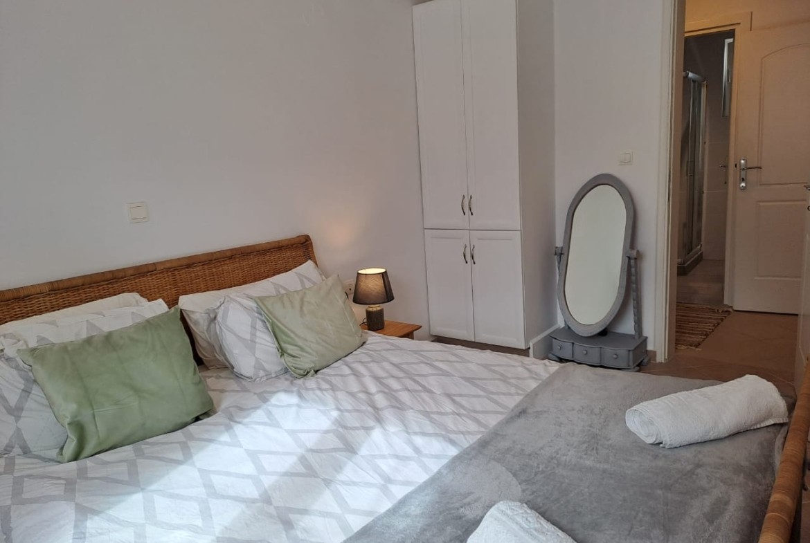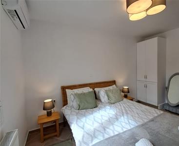 Directly to the right of the front door is the first double bedroom with fitted wardrobes and air-condition unit. Directly to the left of the front door is the separate lounge with wall mounted TV, the sofa converts to a single bed. Through the lounge is a useful utility area with washing machine and storage area. To the right is the large bathroom with Italian shower. To the left is the second double bedroom with fitted wardrobes and air con unit.