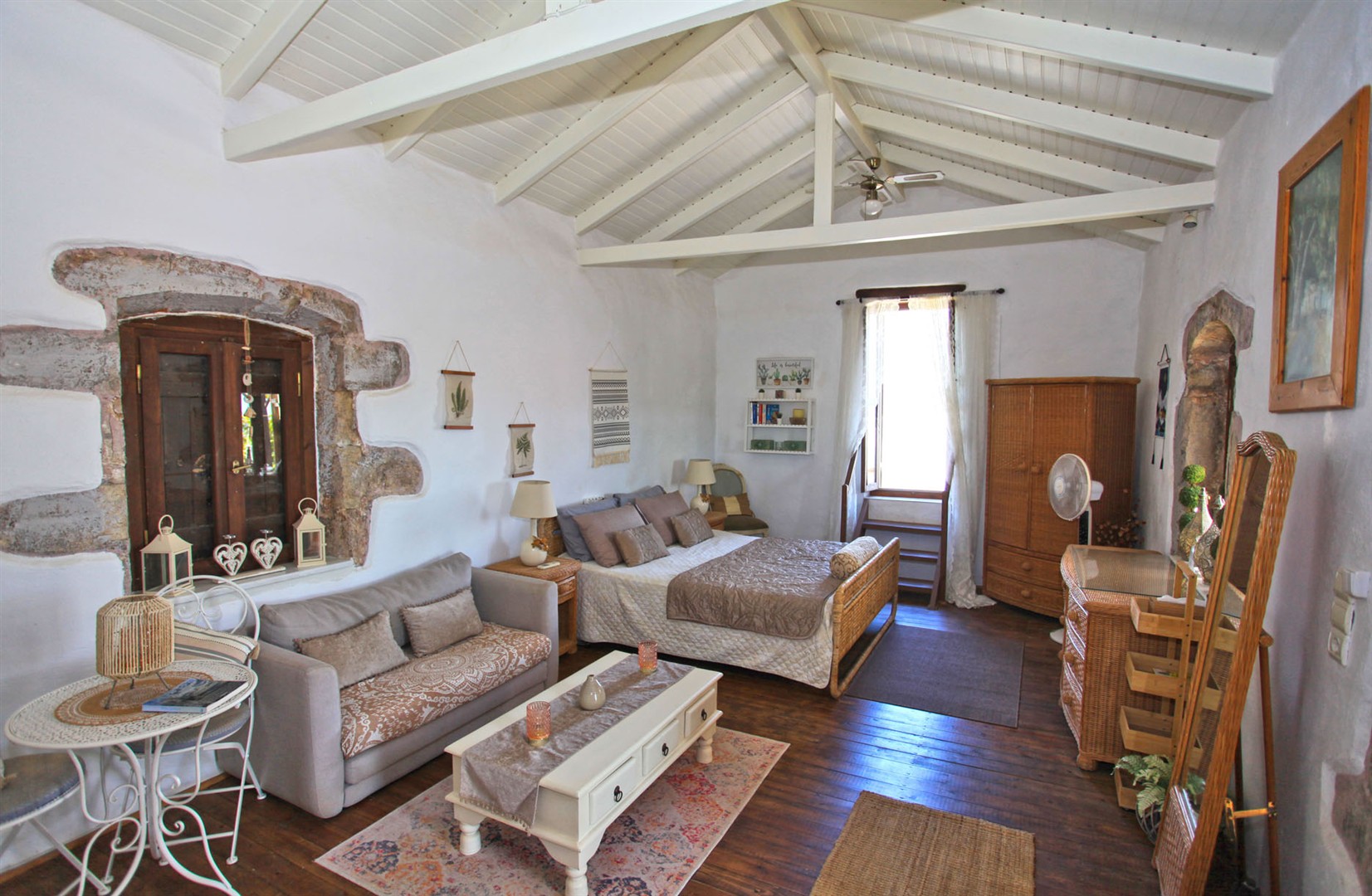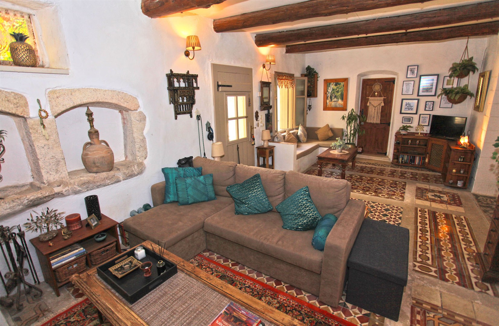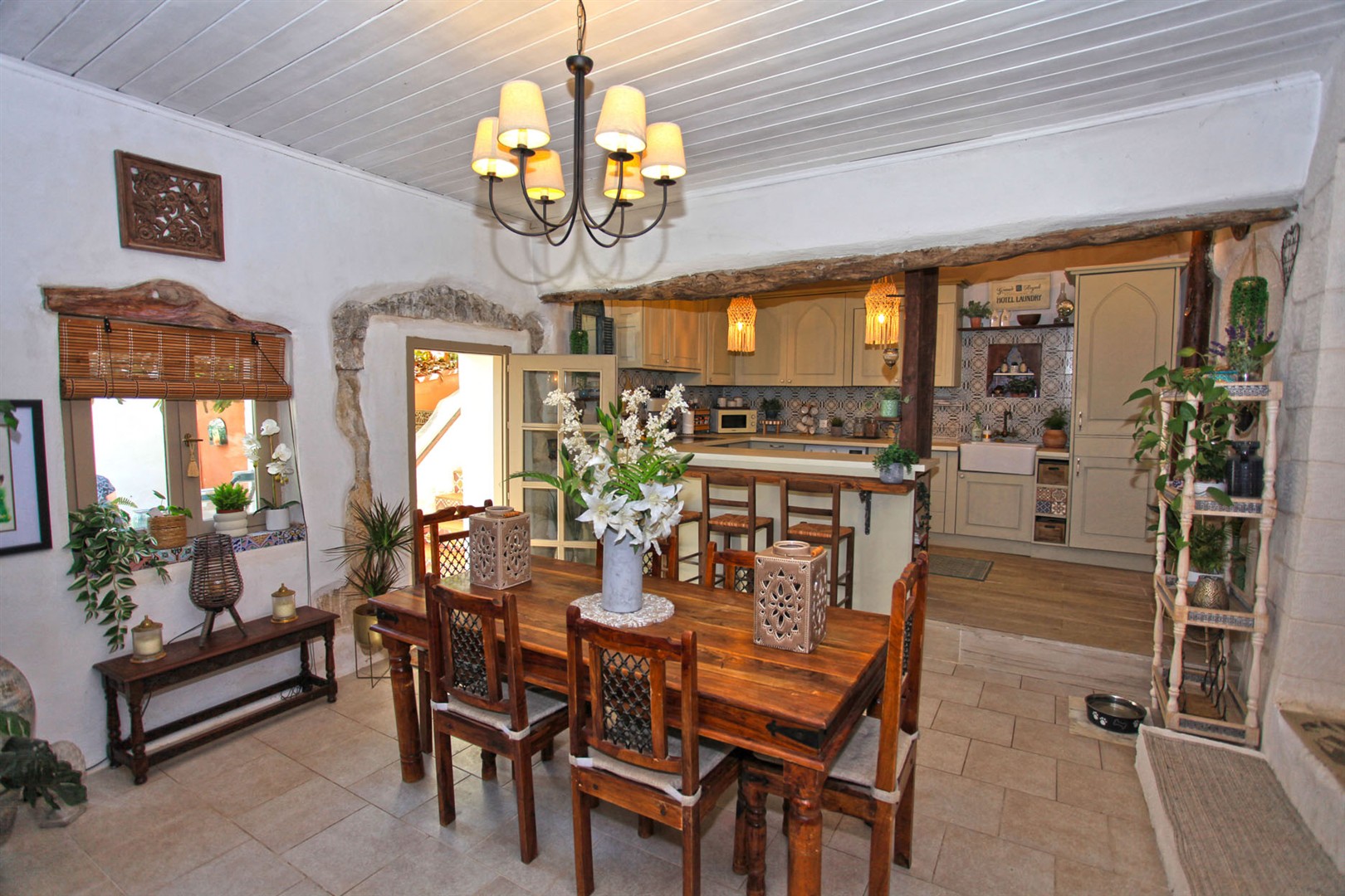 It retains many beautiful Cretan original features such as wood beamed ceilings and stone floors - all blending in perfectly with the Moroccan inspired decor throughout.