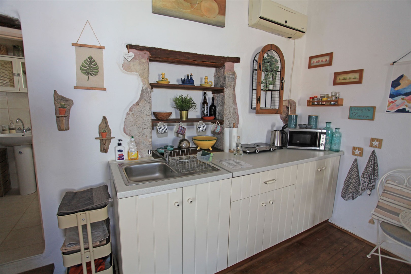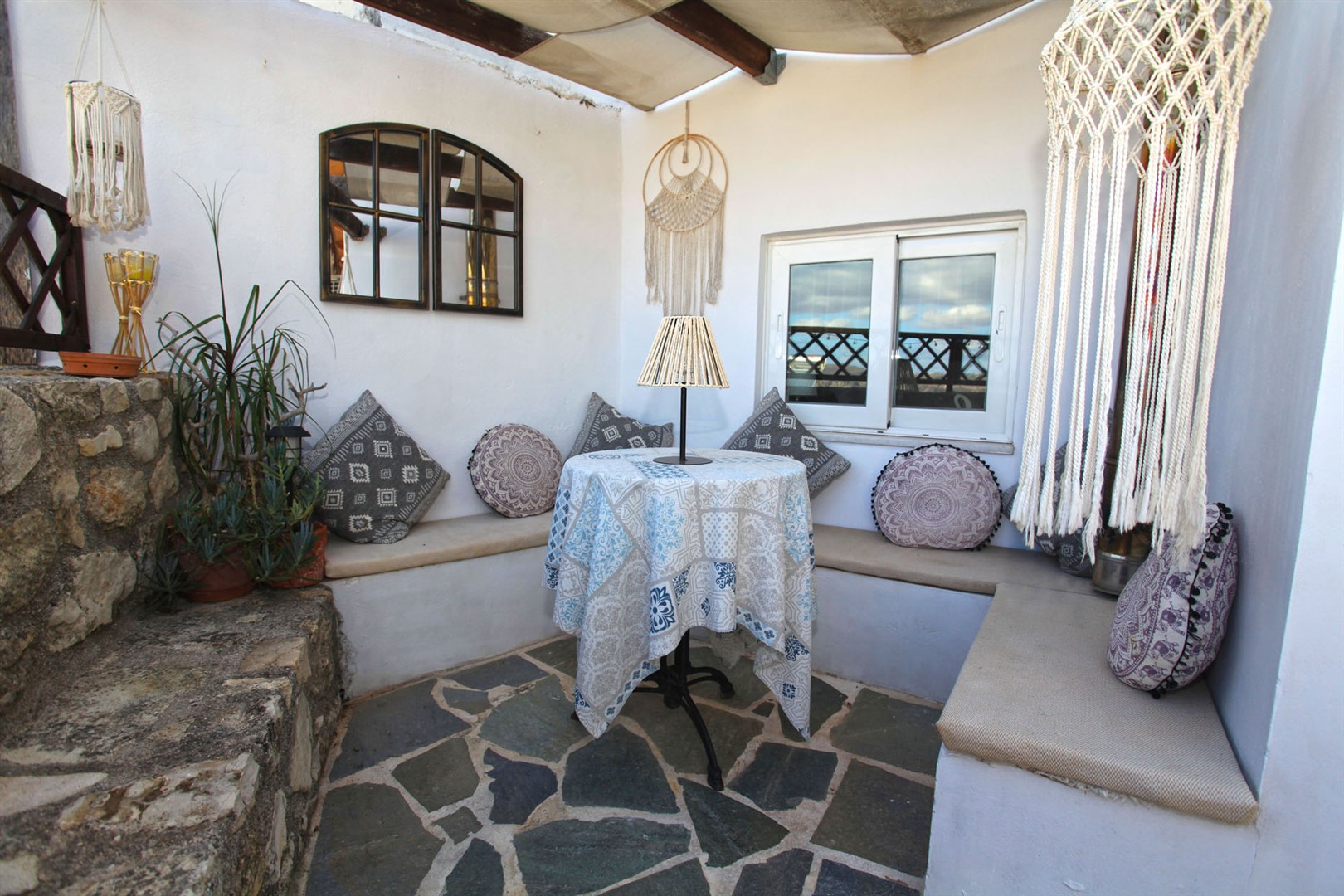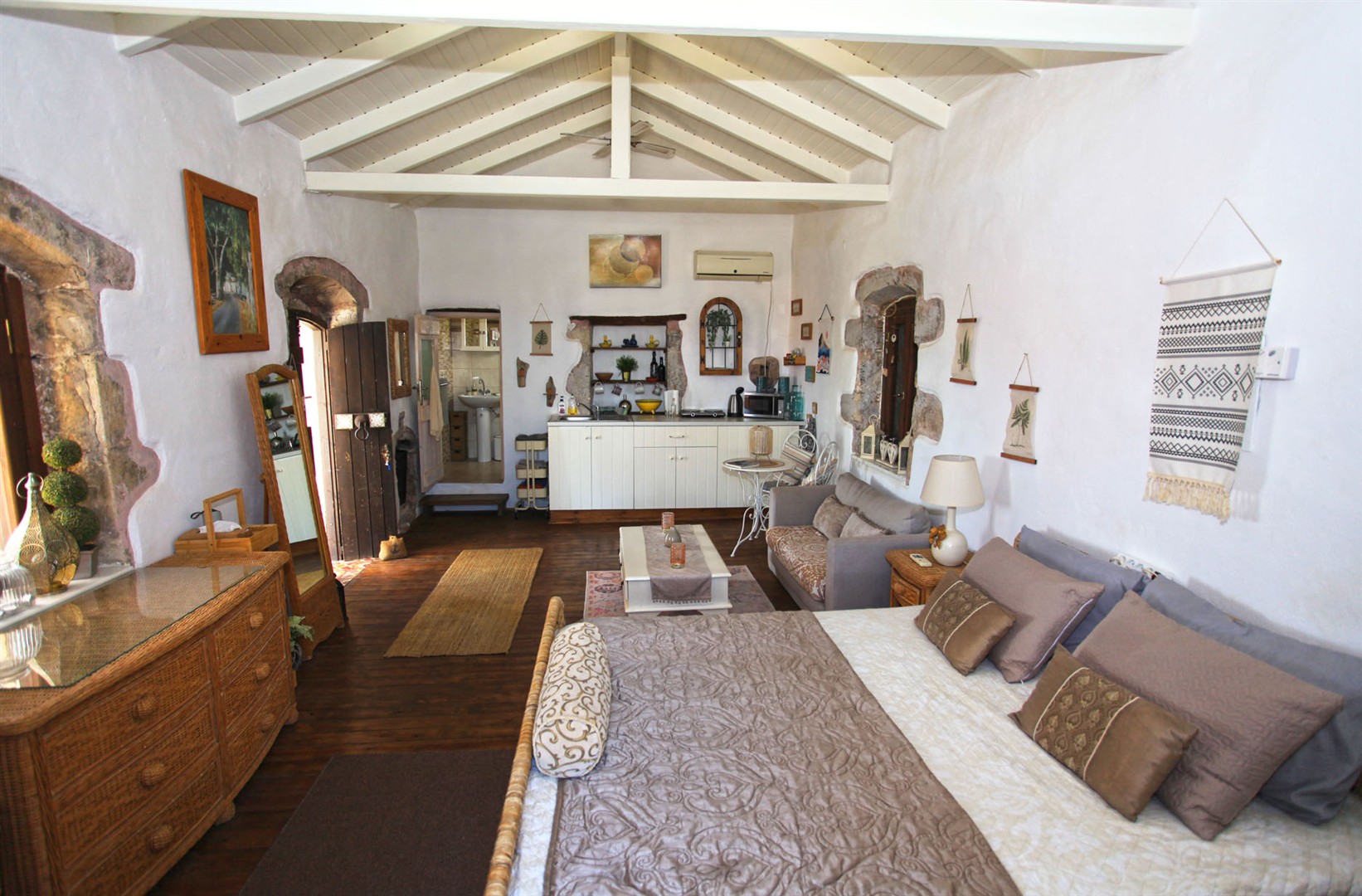 It retains many beautiful Cretan original features such as wood beamed ceilings and stone floors - all blending in perfectly with the Moroccan inspired decor throughout.