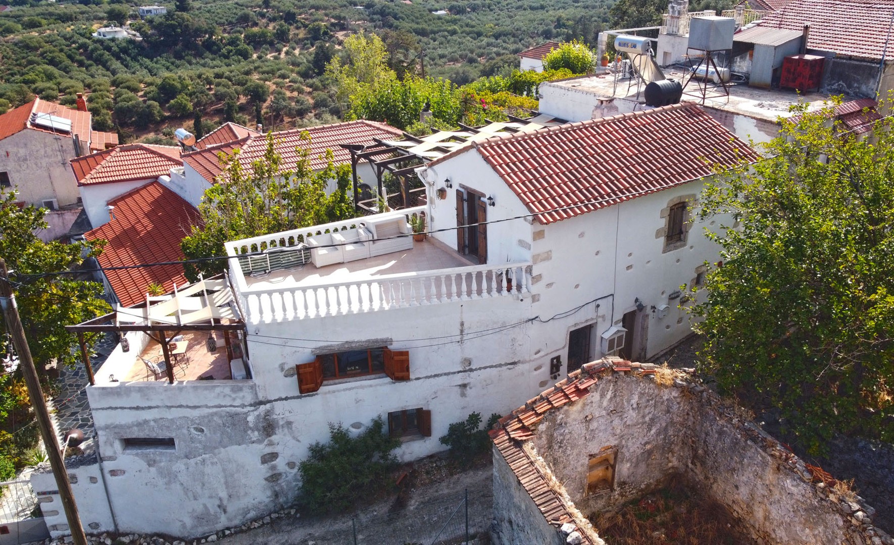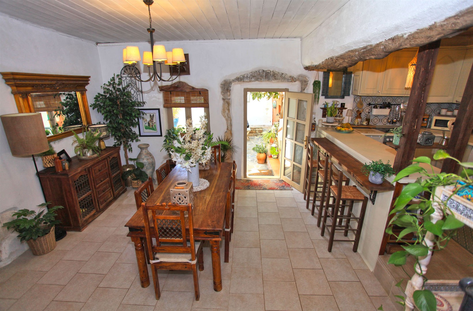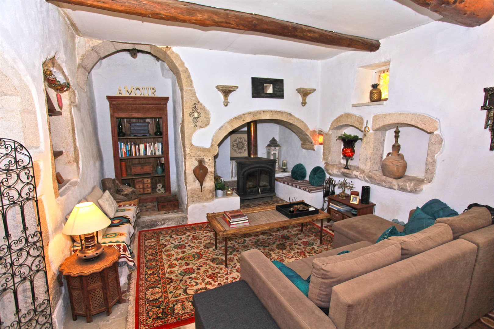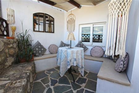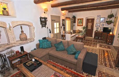 Entering from a quiet village lane into the main property, there is a spacious living area with the original Greek oven as a feature along with a wood burning stove.