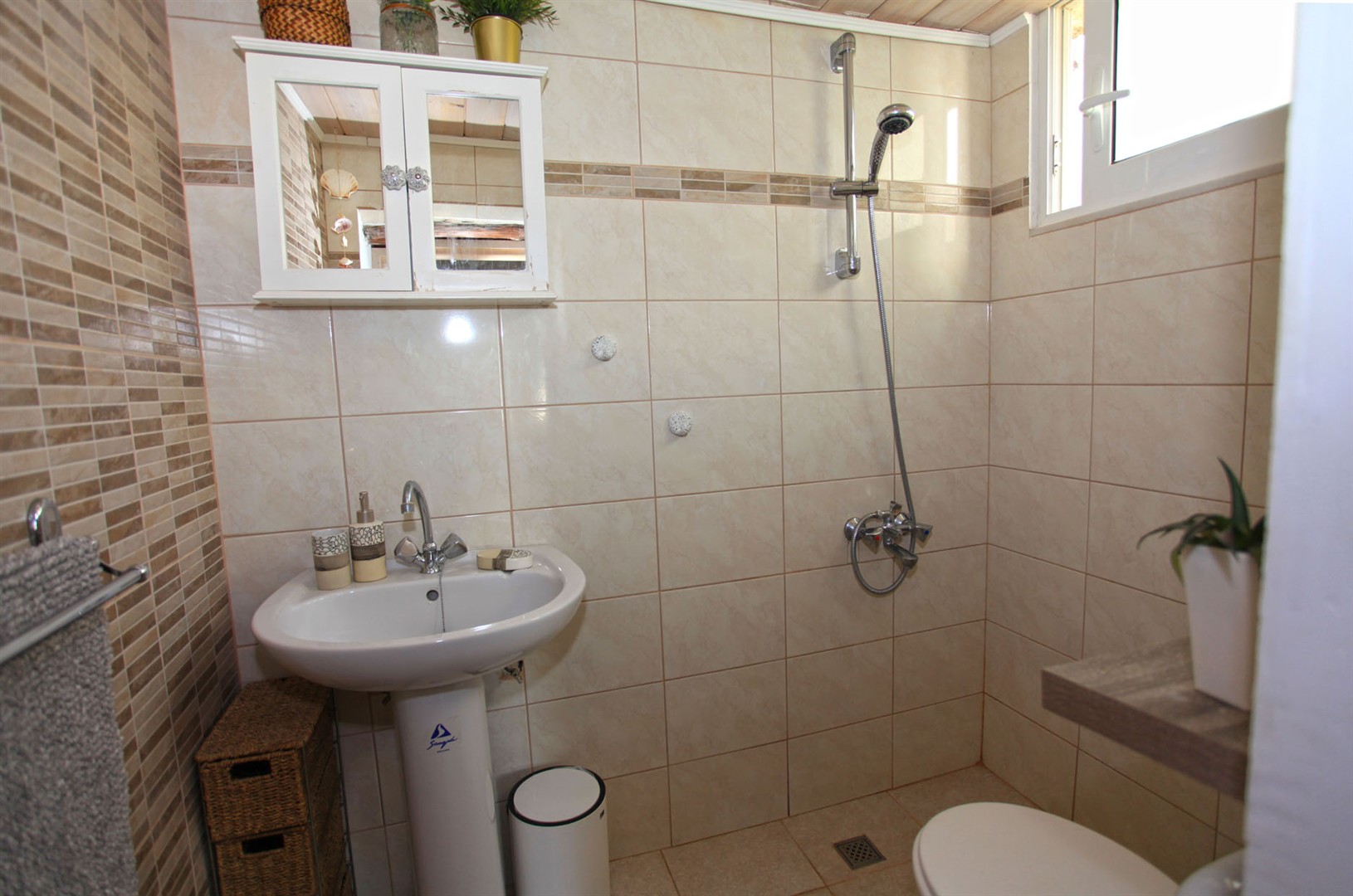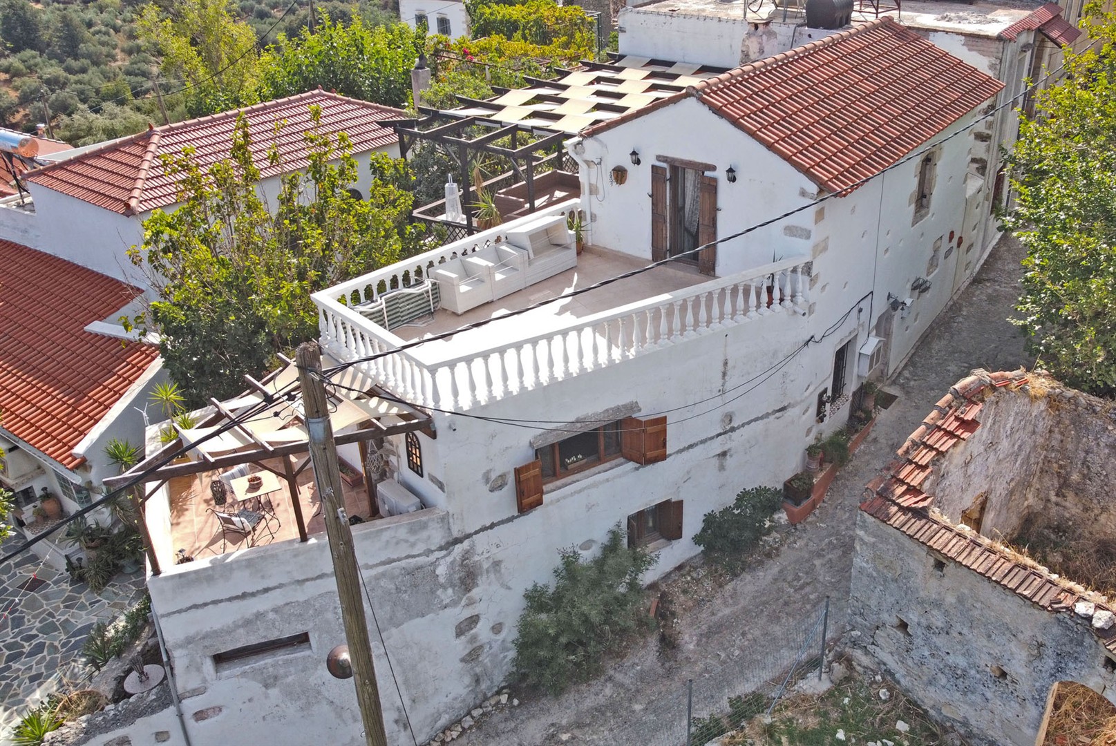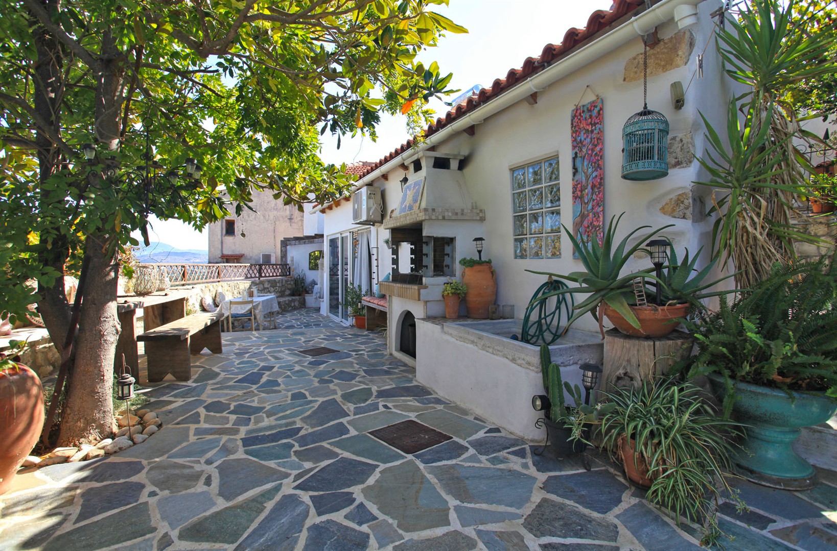 Entering from a quiet village lane into the main property, there is a spacious living area with the original Greek oven as a feature along with a wood burning stove.