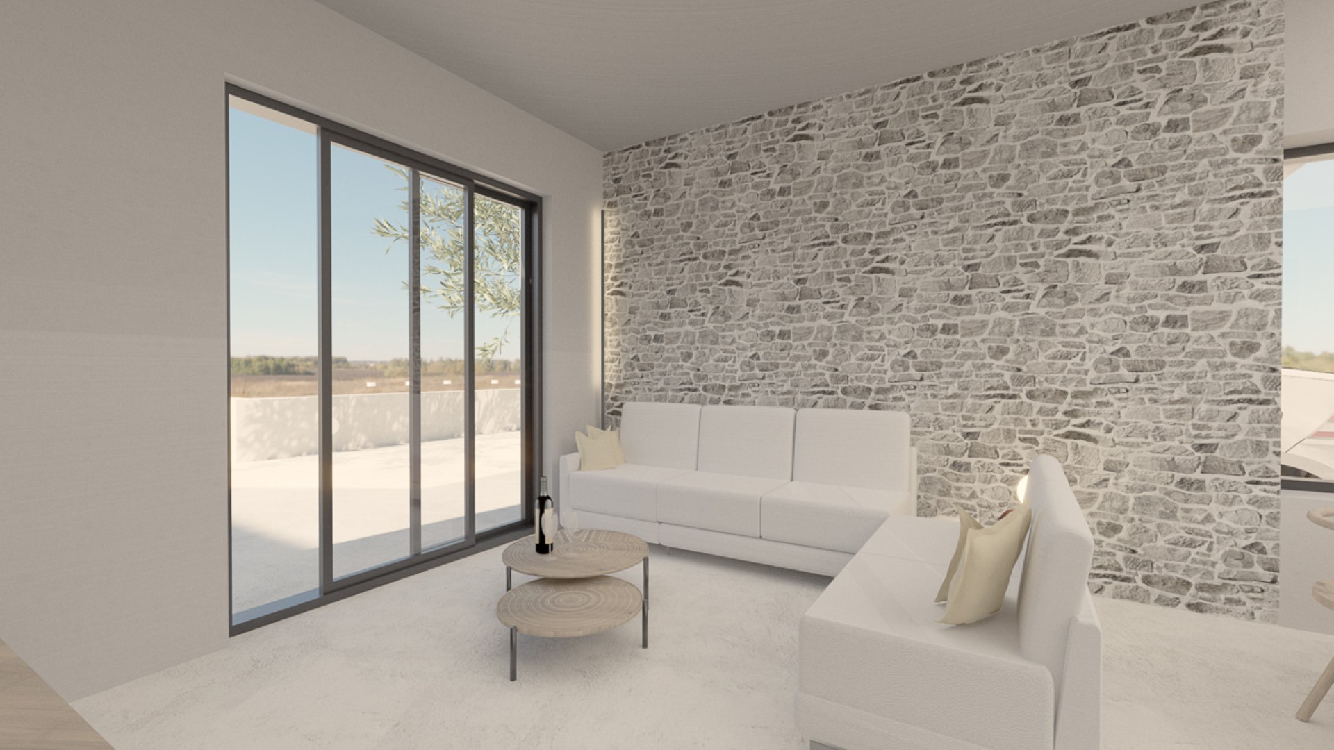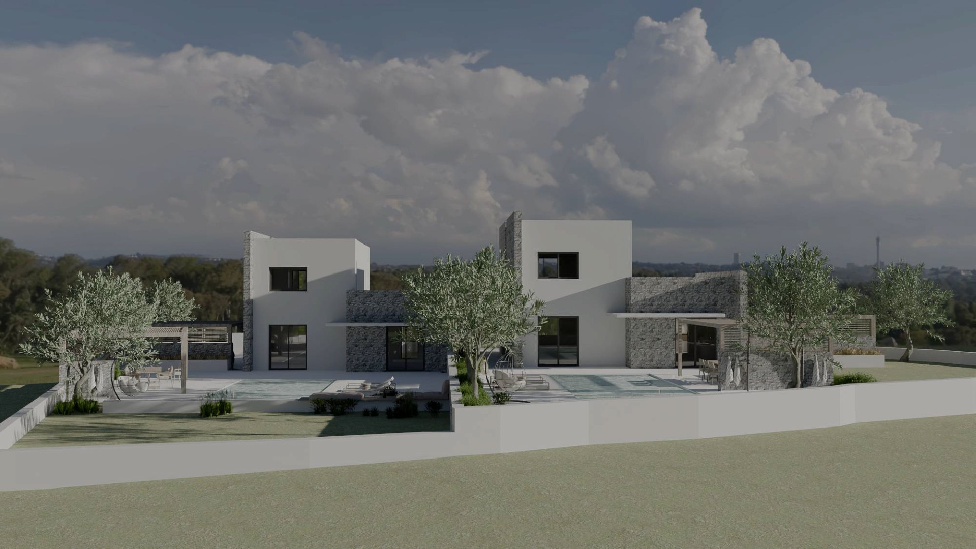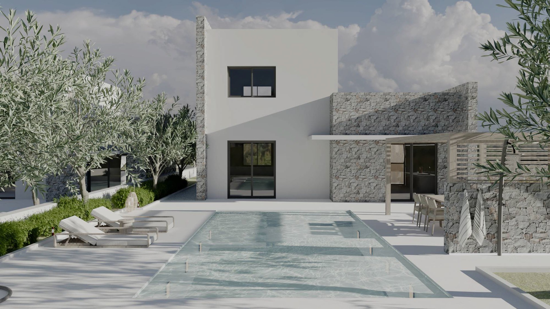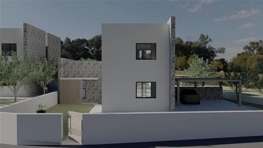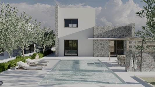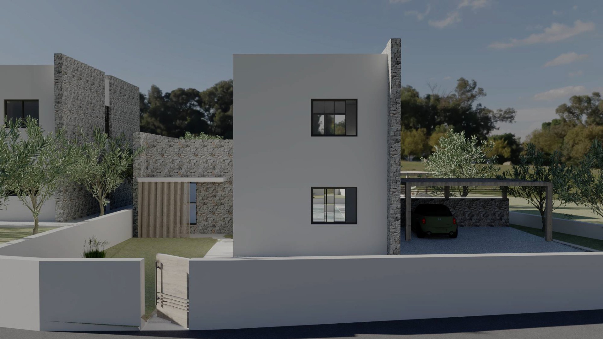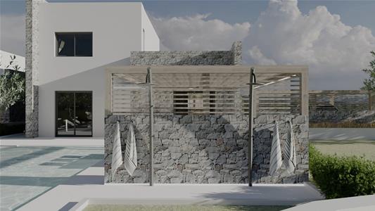 A modern and airy prefab villa for sale, currently being built and awaiting completion, located in the traditional village of Drapanos