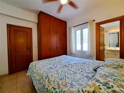 The first floor offers two additional bright bedrooms with built-in wardrobes and access to balconies with stunning views. The upstairs bathroom features a bath with an overhead shower and access to a large balcony overlooking the pool and garden.