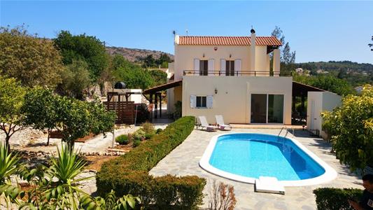 This charming 3 bedroom villa in Gavalochori, Crete, offers a peaceful retreat with stunning mountain views, a private pool, and a beautifully landscaped garden.
