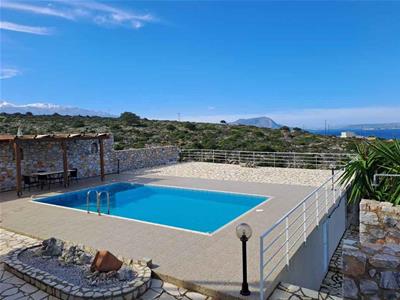 This lovely villa enjoys stunning, uninterrupted open sea views across the green fields below, with a breathtaking mountain backdrop, set in a peaceful and highly desirable location.