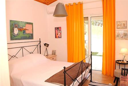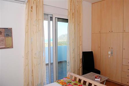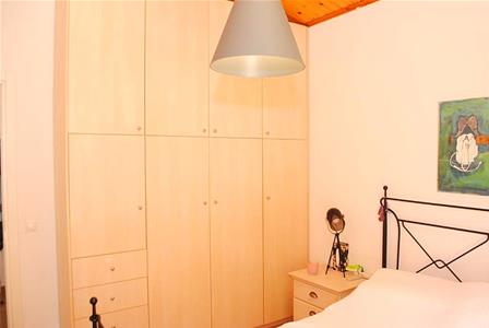 Double sized bedroom with fitted wardrobes. Wooden vaulted ceiling. Double doors to front facing balcony terrace with sea and mountain views.