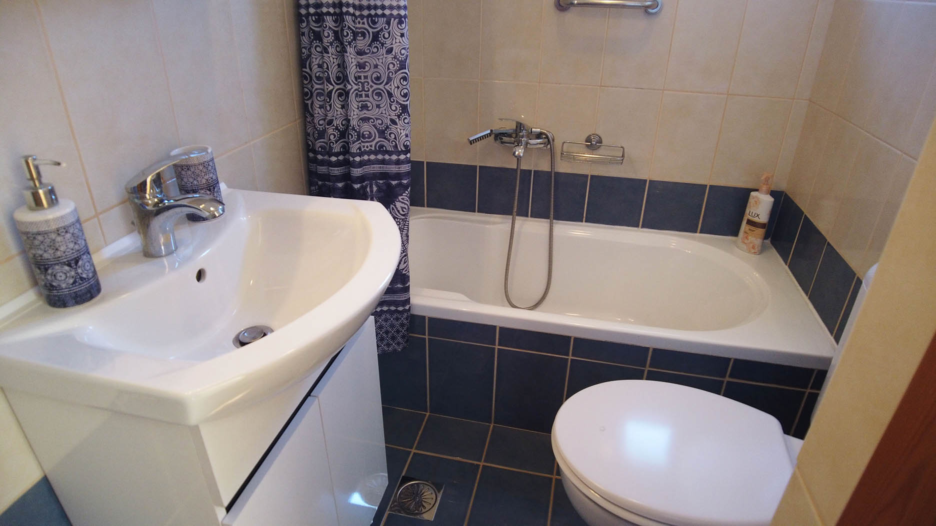 Also on the upper floor is a further bathroom with a half bath and shower.