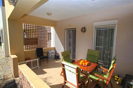 The villa has its own shady garden and BBQ area and a spacious ground floor covered terrace with tent blinds which is very private and provides the perfect shady spot for outdoor seating and dining.