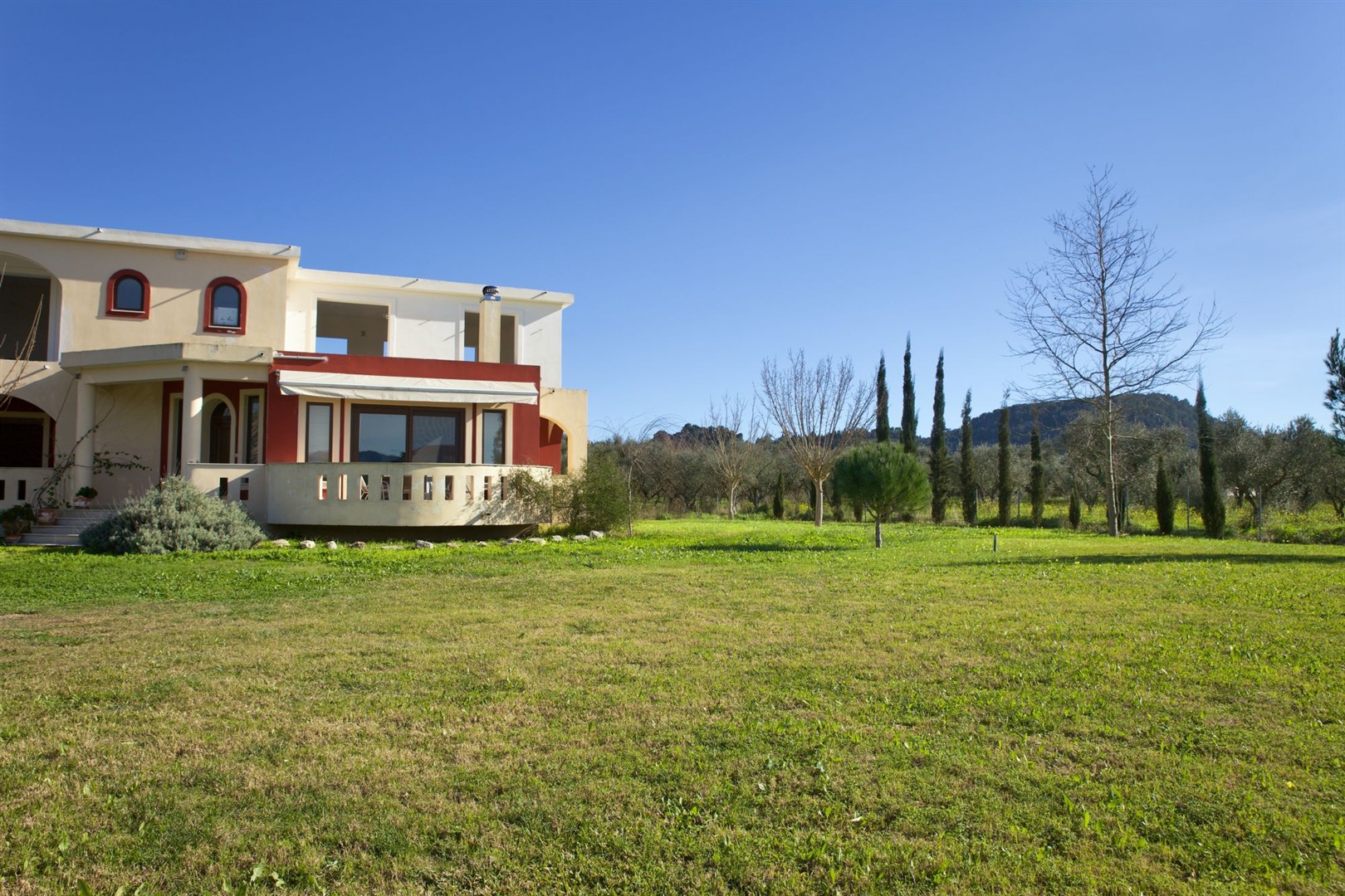The property is situated on a big plot of 4600m2, with 60 olive trees in the quiet countryside of Zakynthos. The view of the "Kambo" of Zakynthos stretches out before you and in the background you see the mountains of Zakynthos. There is plenty of space around the house to make a pool. The 60 olive trees are in the field right next to the house and will provide more olive oil than you can eat!