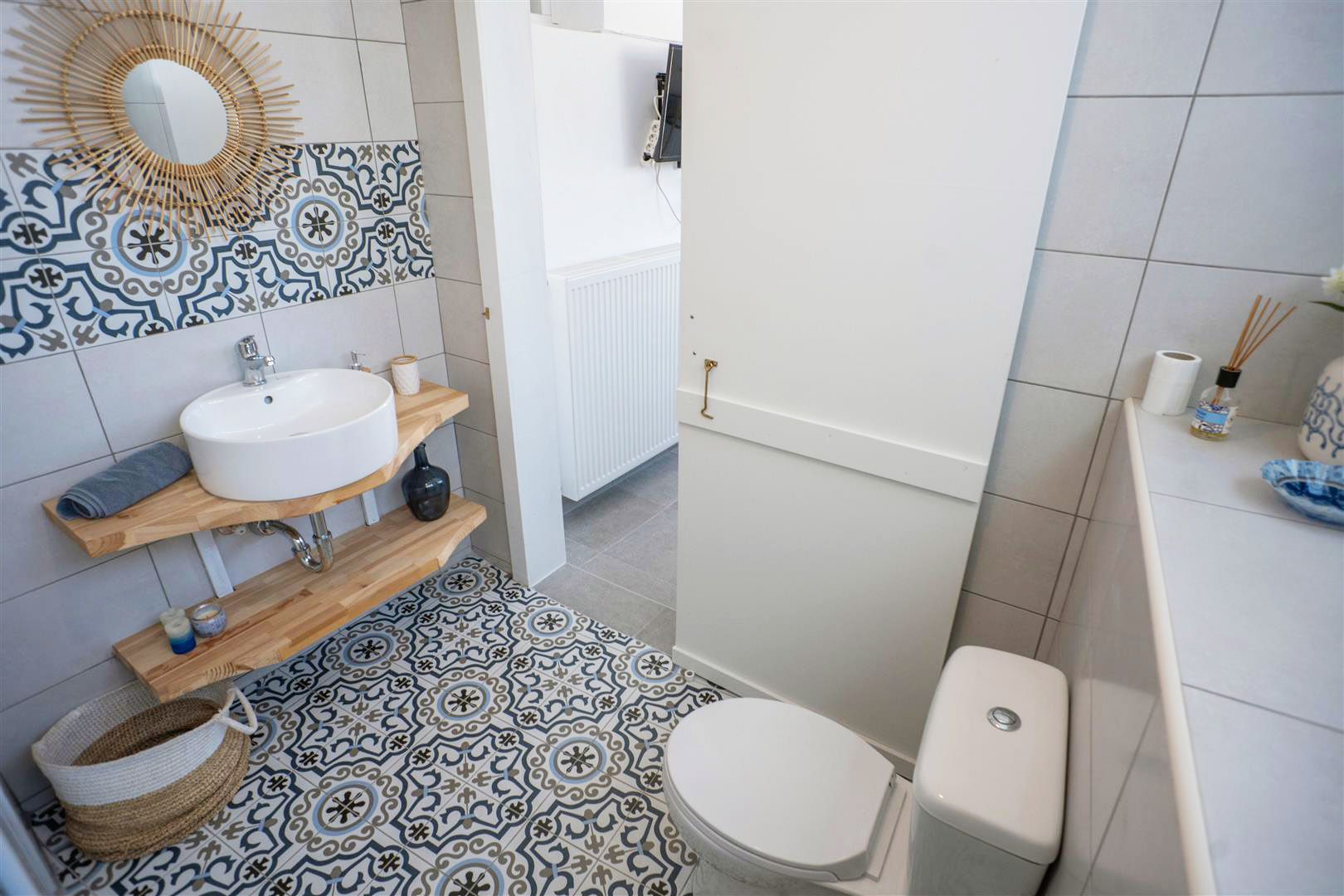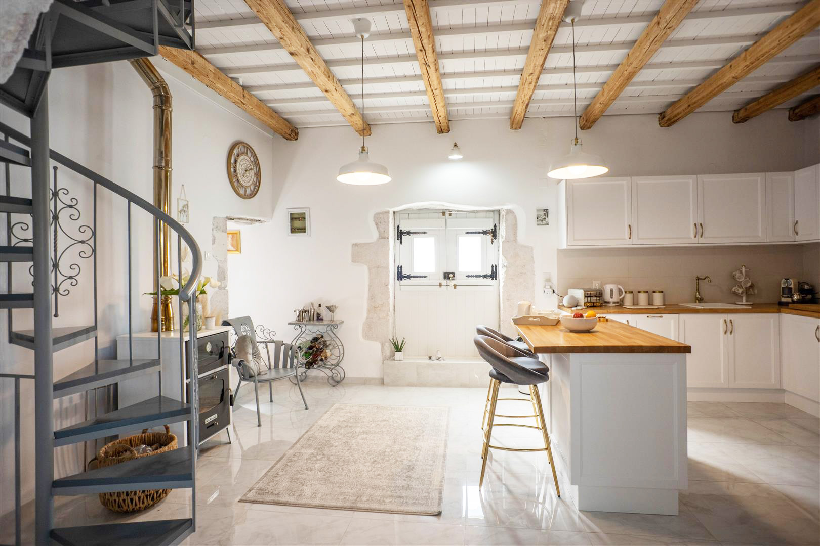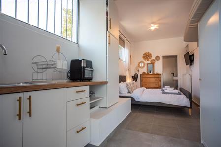 Next to the main entrance of the house is a separate guest accommodation which now includes a bedroom, a bathroom and a private kitchen area, all beautifully decorated! This can be rented out separately from the main house, providing the owners with a rental income.