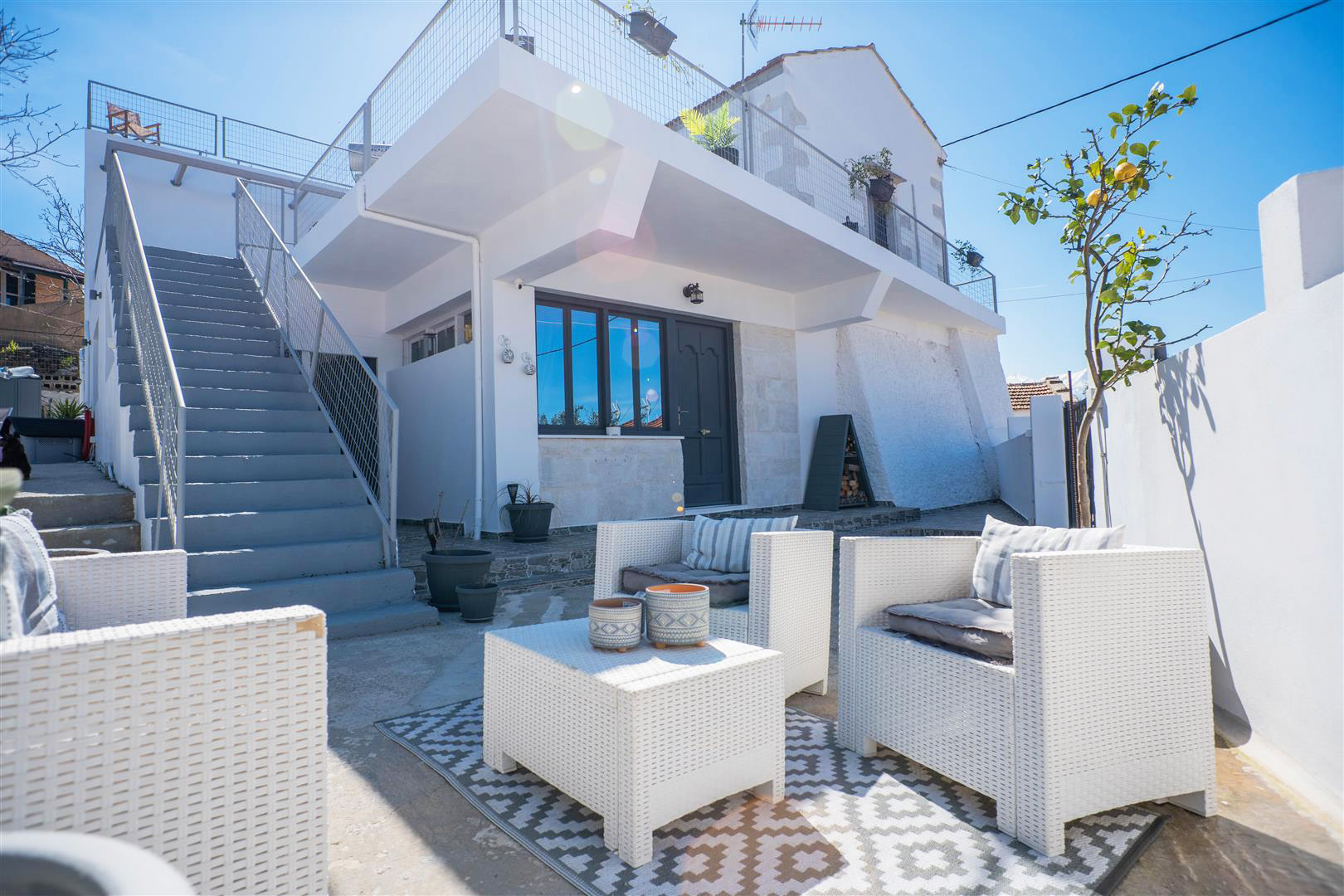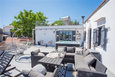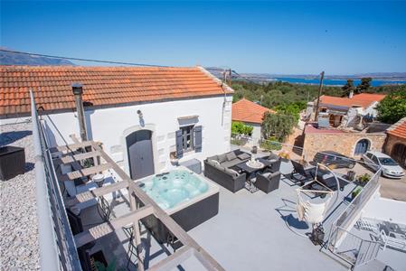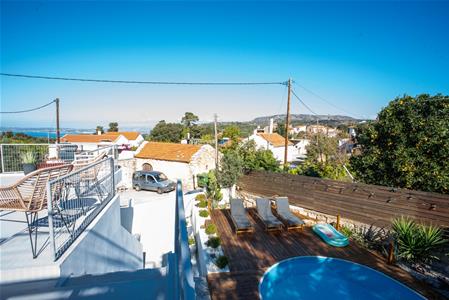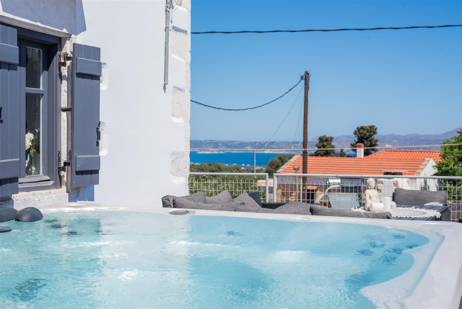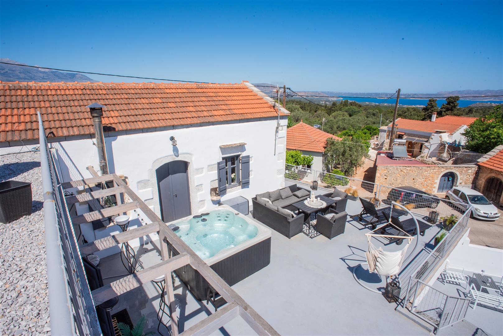There is an external staircase leading from the ground floor garden/lounge area onto the very spacious first floor terrace where a Jacuzzi and a lounge are placed! The perfect spot to cool down on a hot summers day, while enjoying the surrounding village and sea views!