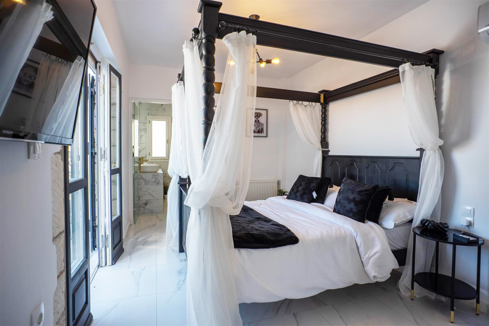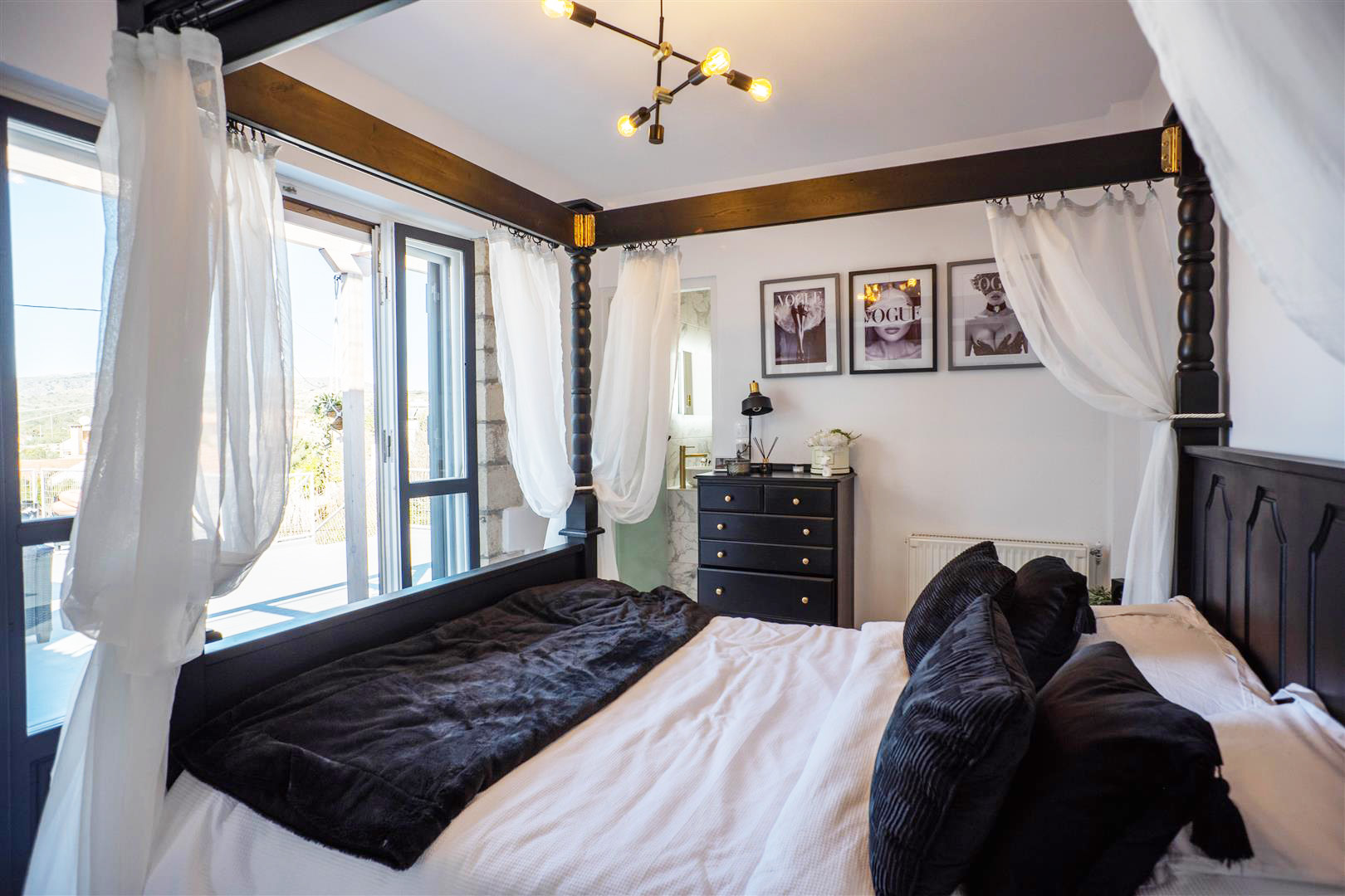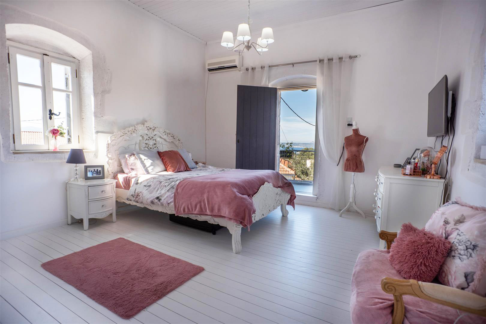 To the right is a large guest bedroom with 2 separate doors leading onto the front and side of the spacious terrace and enjoys great views of the White Mountains and sea.