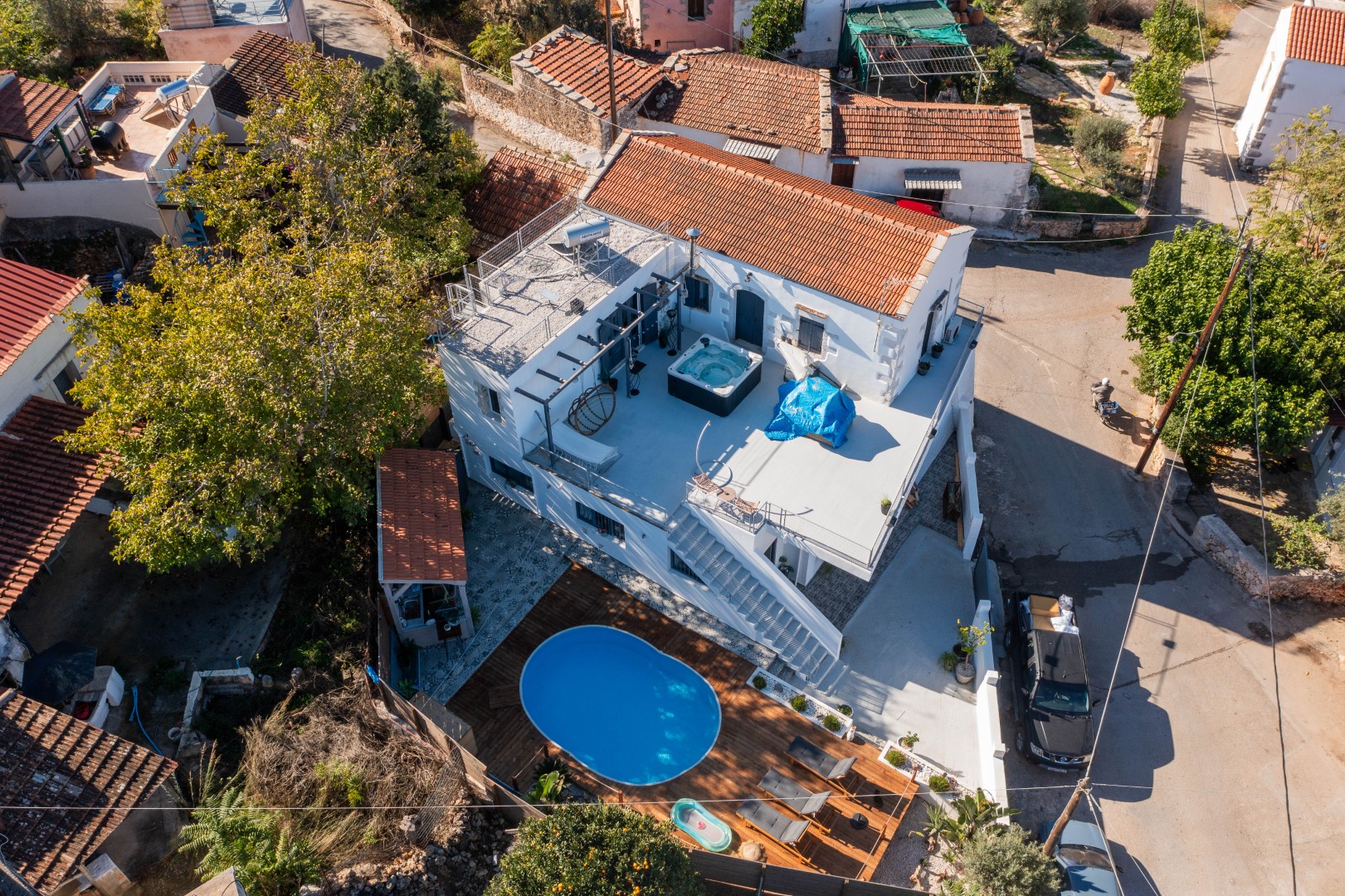 To the back of the property there is a spiral staircase leading to a second terrace (roof level) with amazing 360o views of the White Mountains, sea and village! The solar panel is installed here.