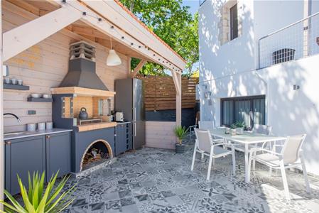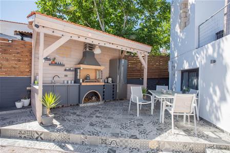 A newly built BBQ is located at the edge of the garden, covered by a 9m2 pergola, and includes a sink, fridge/freezer, BBQ and plenty of storage cupboards. This area is nicely tiled and has room for dining in the shade.
