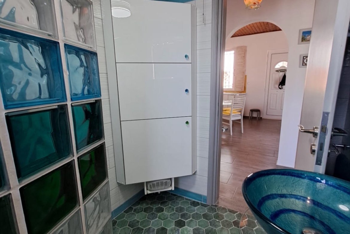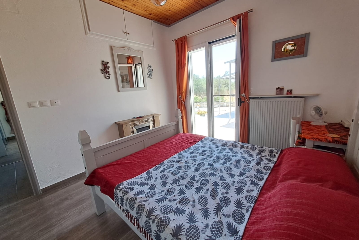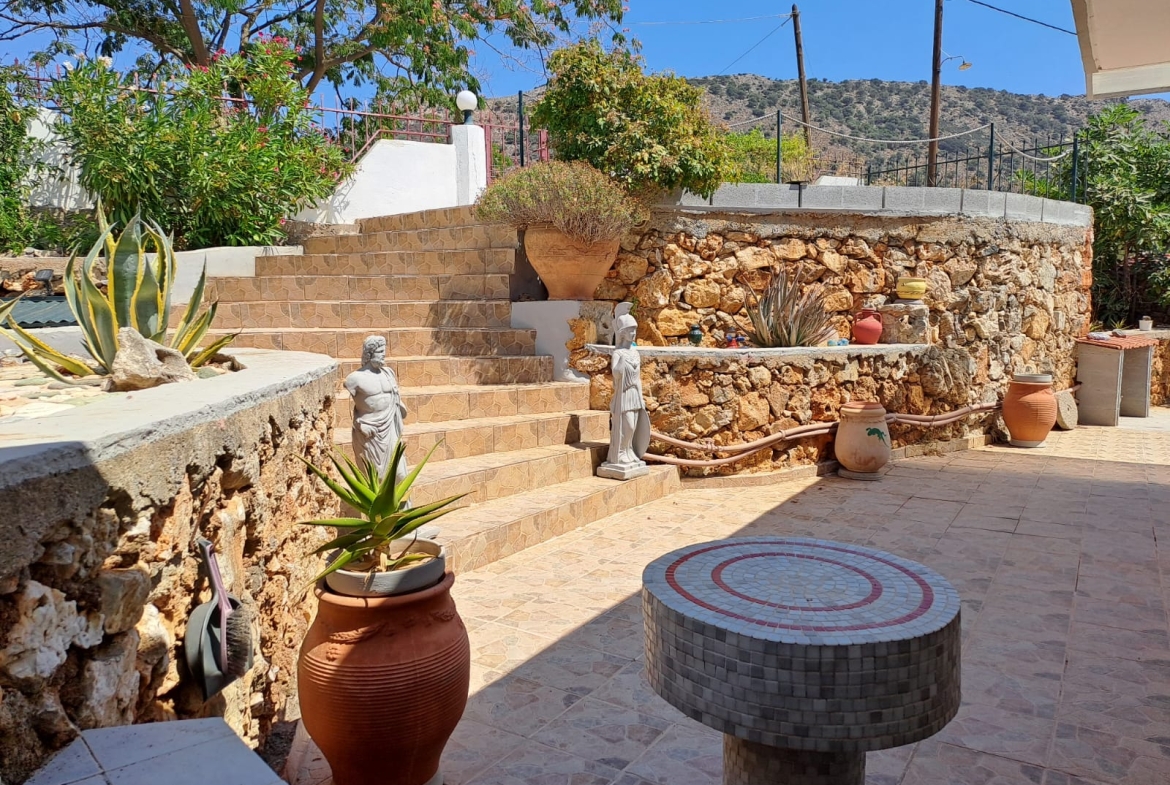 This colorful 2 bedroom, 1 bathroom house plus studio with ensuite bathroom sits on a large, easy to maintain plot and is in walking distance from the center of Drapanos village.