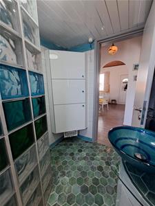 Garden and storage: In between the main house and studio, linking the buildings together, are two storage rooms, one housing the heating equipment. There is another shed in the garden. To the side of the house, from the road, there is off road parking. Steps from the car park take you down past a sun terrace, to the shady paved patio at the front of the house.
