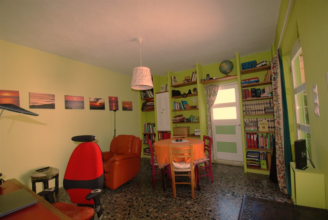 On the main terrace level, the home includes a fully equipped kitchen and dining area, living room with wooden burner and access to a balcony with fantastic sea views perfect for outdoor sitting. A study room easily adaptable into a bedroom, a double bedroom with en-suite bathroom with built and hand plastered shower.