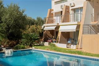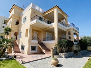 Great villa with private swimming pool in a walking distance to the beach, in Rethymno Crete.This two story villa is actually consisting of two houses, one on each level.It is situated in Adelianos Kampos at 5km from Rethymno city and only 400 meters from the sea and sandy beach.The villa has been built on a land of 800sqm, has a total size of 344sqm with 7 bedrooms, 5 bathrooms, 2 living rooms and 2 kitchens offering the opportunity to be split it into a 2 all floor houses.On the ground floor of 183sqm there is a large open plan living/ dining area and fully fitted kitchen, a large storage room (could be used for any purpose), 3 bedrooms and 2 bathrooms.The first floor of 161sqm with separated access has been built also following a split-level design to provide a modern and airy feeling ...
