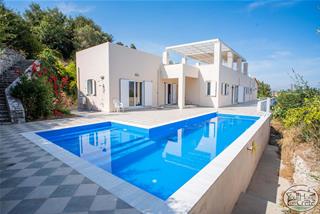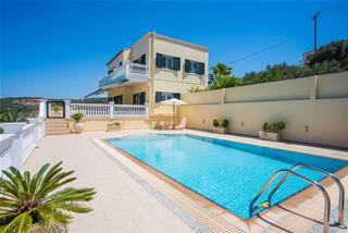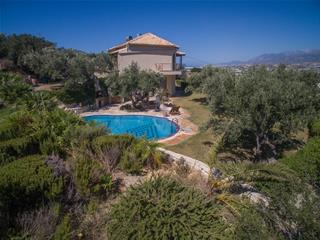 A FIVE BEDROOM LUXURY VILLA WITH FANTASTIC SEA VIEWS IN AGIA GALINI!!This property is in a unique position giving privacy, whilst offering panoramic sea and country views. It is of a traditional Post Minoan design, located close to Agia Galini and within short driving distance of Agios Georgios Beach. There is a large infinity pool set in beautiful landscaped gardens. The villa offers year round comfortable living. Located on a large land plot of 8,300m2 with 150 olive trees and a small vineyard with 17 vines, the property comes complete with stone walls, stone terraces and pathways surrounding the property and with lovely garden areas.It consists of a large four-bedroom villa and a one-bedroom guest house.Entrance to the property is through a private gate, stone paths and access by car ...