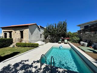 This fantastic stone built villa sits on a large private plot on the side of a hill offering amazing panoramic views overlooking the sea, mountains and countryside. Built in 2006 and renovated in 2015, this stunning villa ticks many boxes: it has views, privacy, sits on a big land, with unobstructed sea and mountain views and is in immaculate condition. It could be used as a permanent home away from home, or as a potential rental business.INTERIORThis property consists of 2 independent buildings: one main house, and a separate building housing a studio with 2 bedrooms housing 4/5 people, ideal for rental. THE MAIN HOUSECleverly designed due to the slope of the plot, the main house is built on 2 levels. You enter via the top level, into the spacious kitchen/ dining room. ...