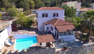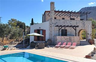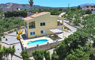 Detached 3 bedroom villa with pool close to sandy beaches.A lovely detached modern villa in an elevated position on the edge of the village of Vainia, East Crete and within a 5minute drive of the town of Ierapetra and sandy beaches on the south coast. The villa was completed to a high specification in 2008 under the direction of the current owner and has an entry phone system, central heating, solar water heating and double glazing with external shutters. The versatile accommodation is arranged on 2 levels and comprises on the upper level...Spacious living room with fireplace and doors to terrace with panoramic countryside and mountain views.Open plan fitted kitchen with built in oven and hob.Double sized bedroom with built in wardrobe.Doors to terrace.Large bathroom wit ...