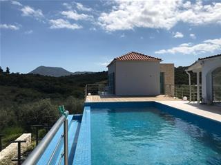A FIVE BEDROOM LUXURY VILLA WITH FANTASTIC SEA VIEWS IN AGIA GALINI!!This property is in a unique position giving privacy, whilst offering panoramic sea and country views. It is of a traditional Post Minoan design, located close to Agia Galini and within short driving distance of Agios Georgios Beach. There is a large infinity pool set in beautiful landscaped gardens. The villa offers year round comfortable living. Located on a large land plot of 8,300m2 with 150 olive trees and a small vineyard with 17 vines, the property comes complete with stone walls, stone terraces and pathways surrounding the property and with lovely garden areas.It consists of a large four-bedroom villa and a one-bedroom guest house.Entrance to the property is through a private gate, stone paths and access by car ...